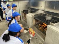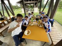 昼食は、自分たちでおこしたかまどの火で調理したカレー。どのグループも上手にできたようです。