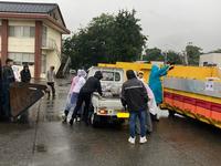 雨で湿った新聞や雑誌は重たい上に、紙ひもが切れやすいので、作業はなかなか大変でした。