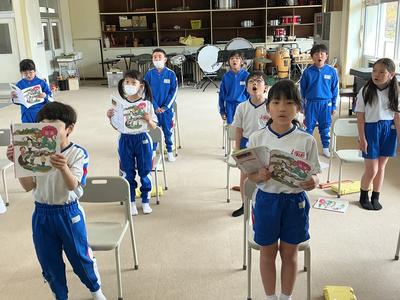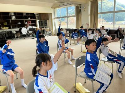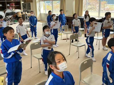音楽の時間に「ハッピーソング」という歌を歌いました。とても楽しい曲で、子どもたちが大好きな曲です。今日は「飛び出そうよ」という歌詞の部分を、どんな風に歌ったらもっと楽しくなるかをみんなで考えました。伸ばすところでだんだん大きく歌い、その後は小さく歌うことに決まり、みんなで歌ってみました。いきいきと歌う姿が印象的でした。