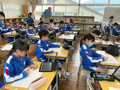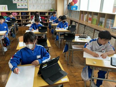 図工の時間に「学校の好きな場所」を描き始めました。タブレットで撮影した写真をじっくり見ながら、丁寧に描き進めています。ICTを活用して観察を深め、自分だけの視点で学校の魅力を表現しています。次回、色を塗ると、より一層その場所の雰囲気が伝わってくるでしょう。完成が楽しみです。