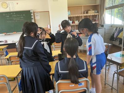 体育大会に向けて、6年生の準備が本格的に始まりました。今年の旗は、赤組が「狼」黄組は「虎」。どちらも力強い筆致でチームの士気を高めてくれそうです。ダンス担当のグループも、自分たちで振り付けを考え試行錯誤を繰り返していました。自ら考えて動く姿が頼もしく、本番までの成長が本当に楽しみです。