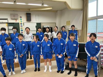 5年生が、2クラス合同で合唱の練習をしていました。「すてきな一歩」という曲を、高音パートと低音パートに分かれて、2部合唱に挑戦です。頭声発声を意識した美しくやわらかい声が響き合い、すてきなハーモニーが広がっていました。