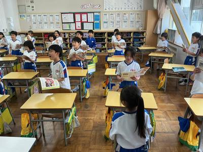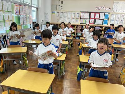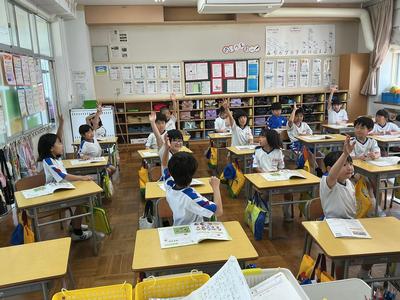 音楽の時間に「小犬のビンゴ」を歌いました。B・I・N・G・Oの部分で手拍子を入れたり、歌の中からアルファベットを一つずつ抜いて歌ったりしながら、リズムの変化を楽しみました。友達と声や動きをそろえて、笑顔いっぱいで活動していました。