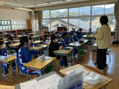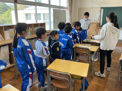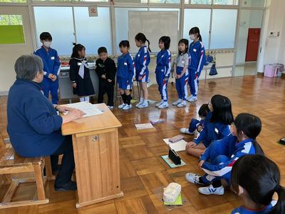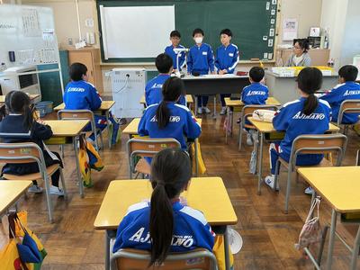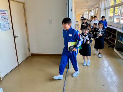 味真野タイム(大休み)に町内子ども会を行いました。会長・副会長・書記の紹介、集団登校の並び方や道路の歩き方、集合時刻や集合場所の確認をしました。また、班長が1年生を迎えに行き、優しく声をかけながら教室まで連れて行く姿も見られ、上級生としての頼もしさが感じられました。安全に気をつけて、毎日登校してくださいね。