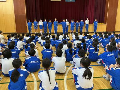体育大会に向けて、結団式がありました。6年生は、組長や団長の紹介の場面で堂々と意気込みを伝え、整列の時には、下級生を優しくリードしていました。これからいよいよ練習が始まります。心を一つに合わせ、体育大会を盛り上げていきましょう!