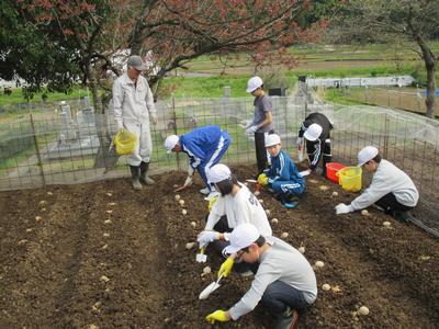 地域の方から、一つ一つ丁寧に教えていただきながらジャガイモを植えました。事前に、サルによる被害防止のための柵も地域の方々が設置してくださいました。一部、理科の授業でも活用しますが、たくさん収穫できるといいですね。ご協力いただいたみなさま、ありがとうございました。