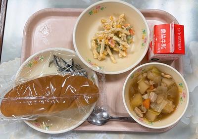 今日のメニューは「コッペパン、ぎゅうにゅう、チキンポトフ、マカロニサラダ、にぼし」でした。チキンポトフは具材もやわらかく、ほっこりするような味でした。
