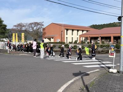 集団登校の様子です。上級生が下級生の安全を見守る姿は、この服間小で受け継がれてきたよき伝統です。保護者のみなさま、地域のみなさま、毎日ありがとうございます。