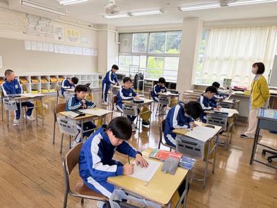 国語の時間に、自分の名前を使って自己紹介を考えました。自分の名前に合わせ、好きなものや嫌いなもの、自分の性格、友達のことなどから言葉を作りました。「おれはイケメン」「ふくまに住んでる」「かにかまも好き」・・・一人一人の個性あふれるユニークな紹介文ができました。