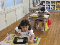 網で上手に捕まえた子、捕まえたけれど自分で虫かごに入れられない子、休み時間に上級生に手伝ってもらって捕まえた子、いろいろでしたが自分の虫かご中の虫を嬉しそうに見ていました。ショウリョウバッタ、オンブバッタなどたくさんのバッタを捕まえ、かごの中はとても賑やかです。コオロギ、チョウ、トンボも少々。