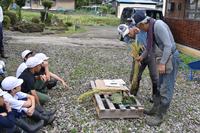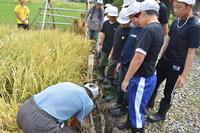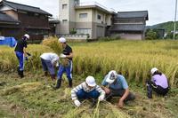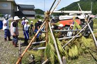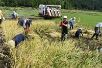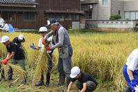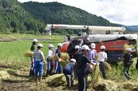 体験学習3日目で、今日は朝から稲刈りをしました。田植えの時、おっかなびっくりで足を田んぼの中になかなか入れることができなかった児童も、育てた米を収穫することはとても楽しんでいました。地域の方に稲の刈り方や、束ね方など教えていただきながら、収穫の喜びを味わいました。収穫したお米でおにぎりを作り、文化祭で販売します。地域の方に喜んでいただけることが楽しみですね。