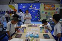 市が大型バスを出してくれ、隣の学校と相乗りで、サンドームで開催されている越前ものづくりフェスタに行ってきました。伝統産業展示コーナーや企業展示コーナーをグループで、体験して回りました。市内の5年生が全員参加です。鋼材を折り紙のように曲げて鶴を作ったり、マーブリングアートを楽しんだり、福井工業大学のブースを楽しんだりしました。
