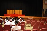 今立地区の小学6年生が招待されて、柳家三三さんの落語教室が行われました。最初の3分程度の小話で、子どもたちは落語の世界に引き込まれて大笑いでした。あとは、何をいってもおもしろくて、笑いのつぼにはまってしまっていました。顔の向き、声色、せんすの使い方など、魅了されました。代表児童が壇上にあがり、そばの食べ方を指南され、とっても上手でした。国語の教科書に載っている柳家三三さんですが、伝統芸能のすばらしさを体感することができました。企画して下さった皆様、ありがとうございました。