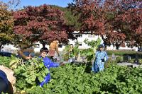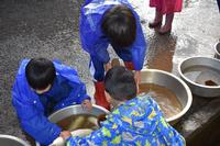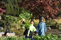 天気に恵まれ大根収穫に精が出ました。シニアクラブの皆様、保護者の皆様にお世話になりました。9人で畑の大根を全部抜きました。泥を落とし、葉っぱをとり、次はたわしで泥を洗い流しました。今年は天気が良く時期が早かったので、さほど水は冷たくなかったので助かりました。全身汚れても気にせず、黙々と作業する2年生の皆さんすばらしかったです。2年生の頑張りに毎年本当に感動します。給食にも使っていただきましょうね。よい体験ができました。