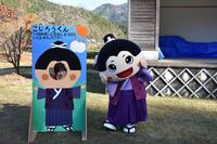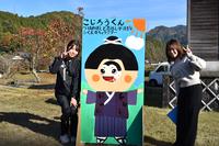 11月15日、ふくま振興会と仁愛大学升田研究室主催で、「ふくまの光」五感で体感ウオークがありました。「ふるさとの光」に選ばれた「柳の滝」「小次郎公園」「獅子返し」を県内の50名以上の方がバスや徒歩で見学して回りました。見学から帰られた後は、「ぼっかけ」「こじわり」「ふくまコーヒー」「ふくまラーメン」が振舞われました。こんなにおいしい郷土食が服間にあると知り感動しました。念願のふくまコーヒーも初めて味わい感無量でした。そんな見学後のゆったりした時間に、服間小学校6年生が2年がかりで製作した小次郎君顔入れ看板の登場です。升田先生に第一号でお顔をいれていただきました。小さい子や年配の方までお顔を入れて記念写真を楽しんでくださいました。なんと小次郎君も看板にお顔をいれてくださってかわいいショットが撮れました。秋晴れのとてもいい天気の中、小次郎君看板を県民の皆様にご披露することができました。今後は、服間公民館に設置させていただきます。お寄りの際は、顔入れをお楽しみくださいね。