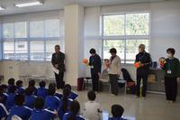 人権擁護委員の方が来校して人権教室を開いてくださいました。かるたの文面をよく聞き、取り札を取ったら、全員で拍手し、とてもいい時間でした。そして、取り札から一番気に入ったものを選び、代表者はその理由もいいました。4つのグループとも3年生が発表し、指導者の方にしっかり言えるので感心されていました。選ばれた四枚は、「それいいね 人の意見も 大切に」「世界中 手をつないだら 平和の輪」「人はみな 言葉がちがえど 同じ人」「負けないで 君の笑顔が 応援団」でした。たくさんのあたたかい言葉をシャワーのように浴びて、みんないい顔でした。いただいた人権マスコットを見て今日のことを思い出し、人権を大事にするようにしてほしいです。