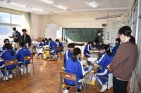 まとめの応用の問題に取り組んでいました。生活に学んだ算数を生かす場面が設定されており、ペア学習やグループ学習を行いながら、問いの答えを導き出していました。よく発言するクラスなので、6年間の集大成の姿を見せてくれていました。中学校でも算数好きでいてくださいね。先日に続き、教員の学び合いのための授業公開でした。先生方も頑張っています。