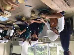 福井県陶芸館と越前市社会福祉センターに行きました。まず、陶芸館では、越前古窯研究の第一人者である水野九右衛門氏の「九右衛門窯」の模型や陶芸士の実演を見たり、大壺を素手で触ったりして越前焼を身近に感じることができました。手ひねり体験もし、越前の粘土を使って食器や置き物を作りました。昼ご飯は、みんなで芝生の上で食べました。とても気持ち良くて、みんなでたくさん遊びました。次に、越前市社会福祉センターでは車椅子の体験をしたり、お年寄りの方と触れ合ったりしました。お年寄りの方もとても喜んでくださいました。