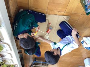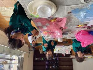 12月のおもちゃランドでは、秋のものを使ったおもちゃのお店を出します。お客さんに喜んでもらえるように、お店の仲間と協力して、楽しいおもちゃを頑張って作っています。たくさんお客さんが来てくれるのを楽しみにしていました。