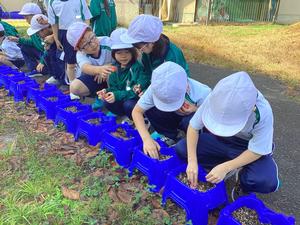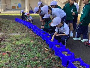 チューリップの球根を植えました。好きな色の球根を選び、植える向きに気を付けて、丁寧に植えていました。今日植えたチューリップが咲く頃は、2年生に進級です。2年生になる楽しみがまた一つ増えました。