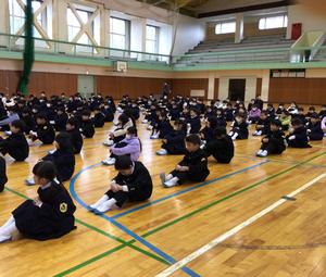 始業式では、校長先生より、新年を祝う言葉「延寿萬歳」について紹介がありました。また、手書きの文字のよさについても話がありました。全校で校歌をしっかり歌い、気持ち新たに学校生活を送ろうという意気込みが感じられました。