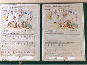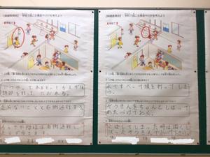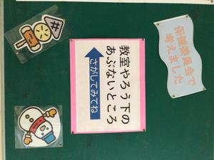 保健委員会が、みんなが安全な生活を送るためにポスターを作って貼り出しています。自分の行動に責任をもって落ち着いて行動しましょう。