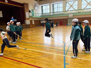 縦割り班ごとに8の字跳びの練習が始まりました。朝の花の子タイムを利用しています。6年生が縄をまわし、みんなで声を出し、数を数えながら跳びます。2月6日の記録会に向けて仲良く、楽しく頑張ります。