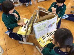 ピアニカで「こぐまの2月」の練習をしています。ペアで、上のパートと下のパートの別れてハーモニーを楽しみました。