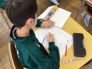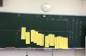 国語科では「大造じいさんとガン」の学習に取り組んでいます。心情の変化を表すグラフを用いて、大造じいさんのガンに対する気持ちの移り変わりを読み取っています。共感する部分も多く、楽しく学習をしています。