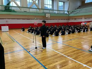 児童代表の6年生は異動してきた教職員の前でしっかりと話してくれました。素敵でした。