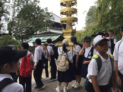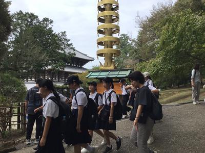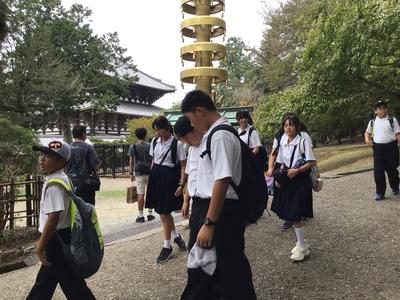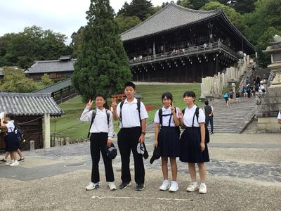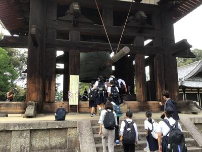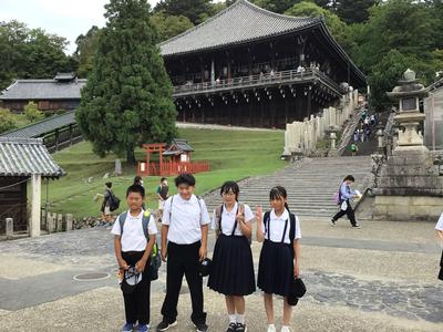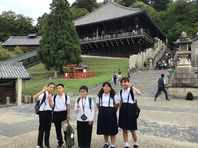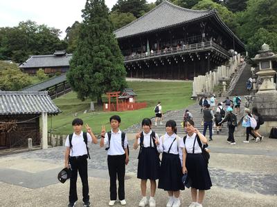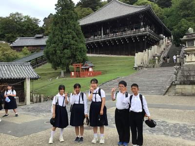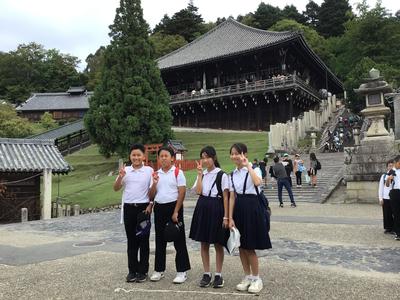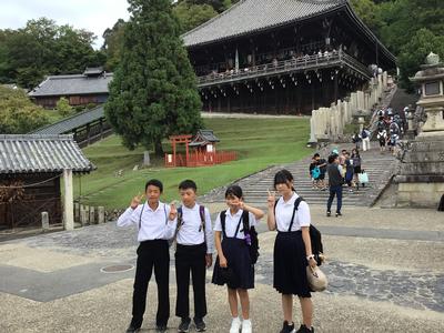 鹿と触れ合った後は福井とも縁のある二月堂へ。活動班ごとにハイチーズ!この後、東大寺大仏殿に移動しました。