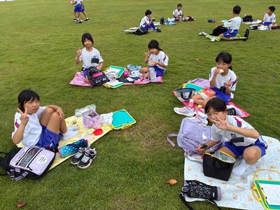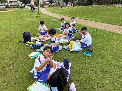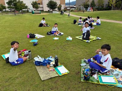 3年生は校外学習に出掛けています。お昼ご飯の時間帯にお邪魔しました。消防署とスーパーマーケットを見学している様子は、後ほどアップします。
