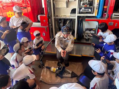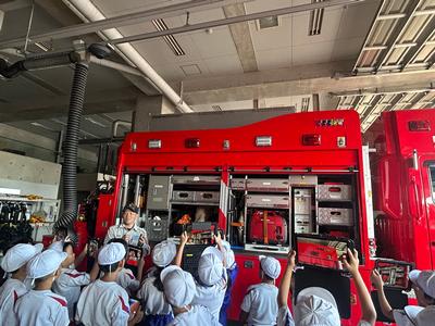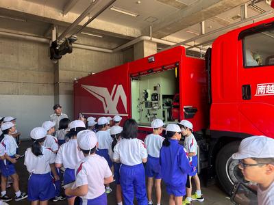 3年生は校外学習で、南越消防組合中消防署とバロー武生店を見学しました。いろんな種類の消防車や、スーパーマーケットのバックヤードを見させていただき、とてもいい勉強になりました。