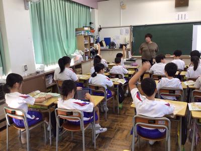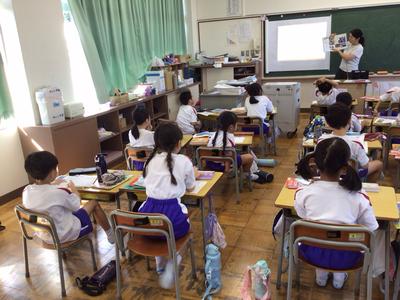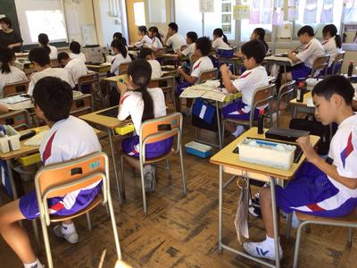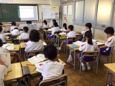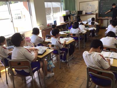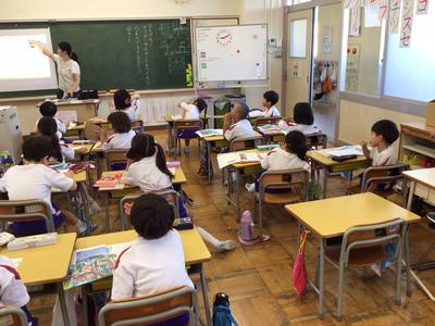 2時間目の各学年の様子です。1年生 国語、2年生 体育、3年生 算数、4年生 外国語活動、5年生 算数、6年生 図工の時間でした。