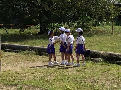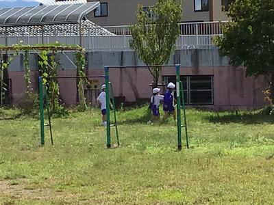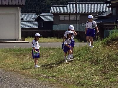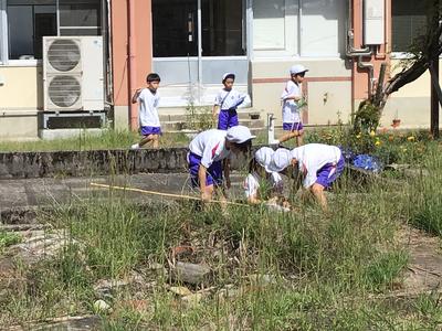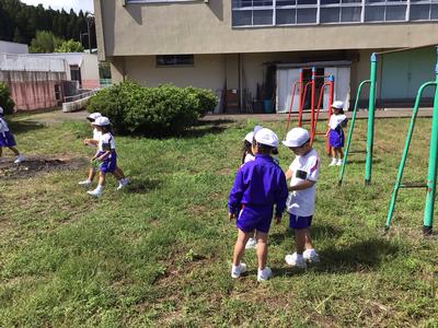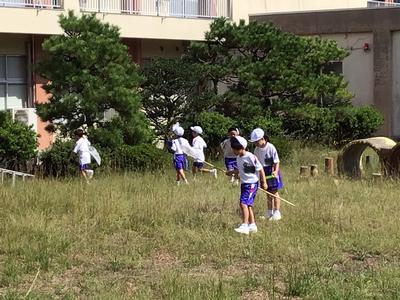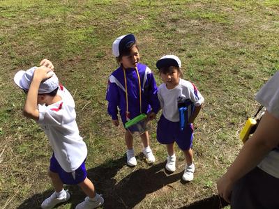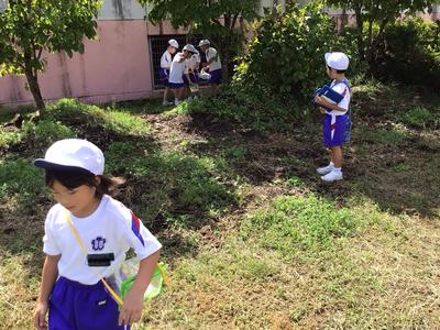 秋空の下、3時間目に1年生が中庭で生活科の学習「秋さがし」を行っていました。虫とりあみを片手に赤とんぼやバッタ、カエルを追いかける子や、タブレットを片手に秋に咲く花を見つけ、写真に収める子など、活動は様々でした。「小さい秋」をたくさん見つけることができたかな。