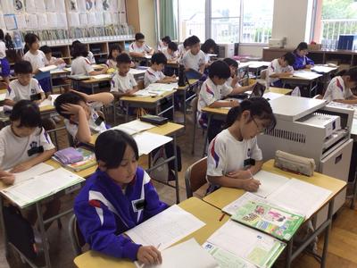 3時間目の各学年の様子です。1年生 算数、2年生 生活科、3・4年生 国語、5年生 音楽、6年生 算数の時間でした。