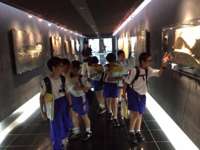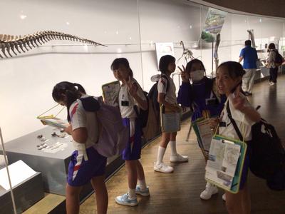 班ごとに協力してクイズラリーに挑戦しながら館内を見学しています。