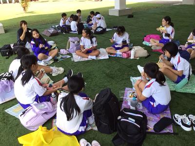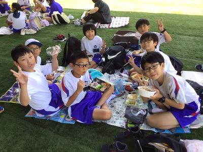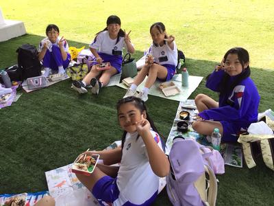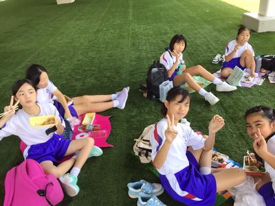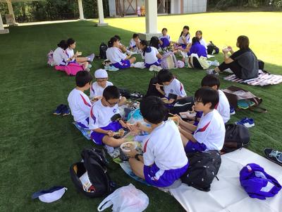 見学を終え、芝生広場にて昼食です。どの子のお弁当もとても美味しそうです。