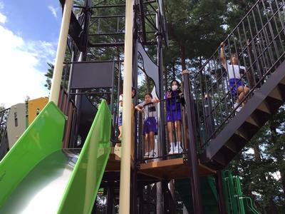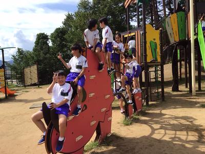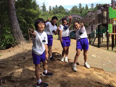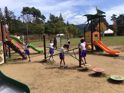 美味しいお弁当をいただいた後、近くの遊具で遊んでいます。みんな仲が良く、微笑ましいです。