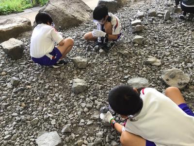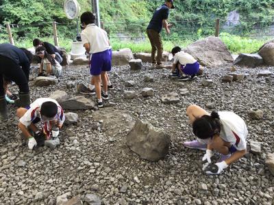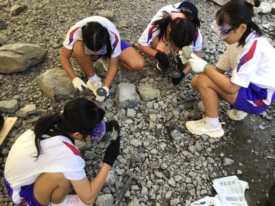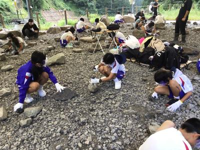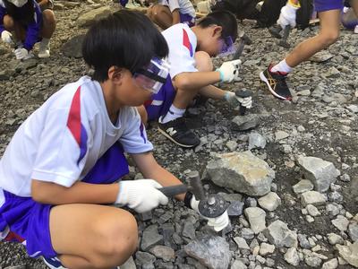 いよいよ待ちに待った化石発掘の時間です。硬い石がなかなか割れない中、続々と化石が見つかり始めました。