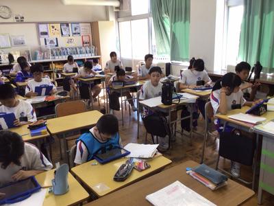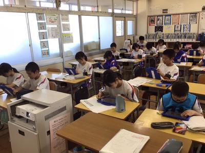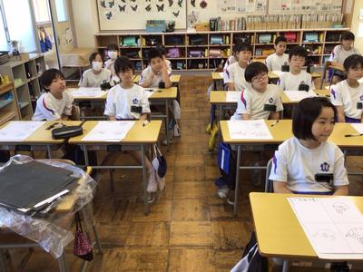 2時間目の各学年の様子です。1・2年生 国語、3年生 書写、4年生 図工、5年生 音楽、6年生 国語の時間でした。