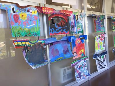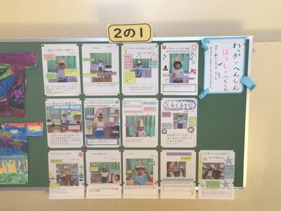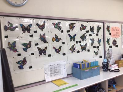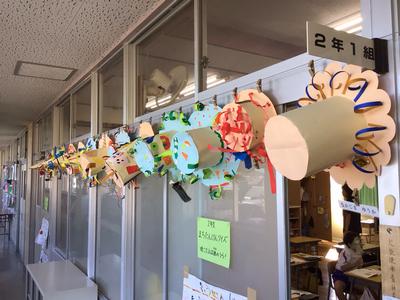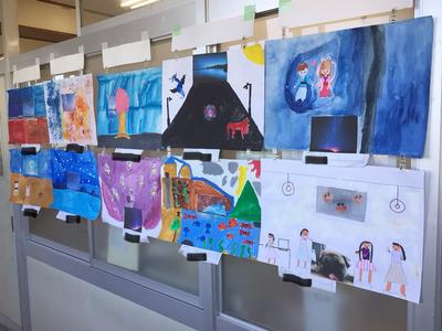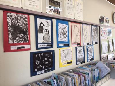 教室内や廊下、階段踊り場には、児童の作品が掲示されています。どの学年も力作揃いです。