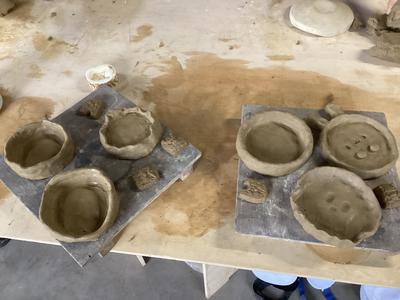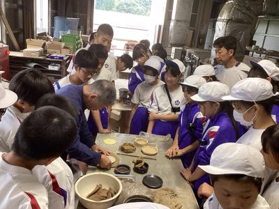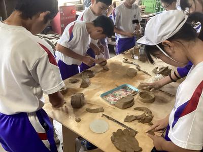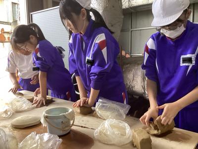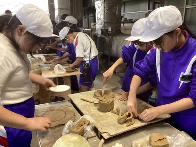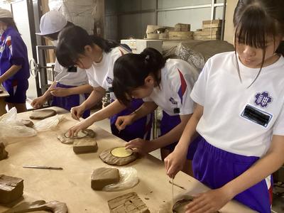 6年生は越前セラミカさんのご協力を得て、越前瓦用の粘土を使った皿作りに挑戦しました。この皿作りは、ふるさと学習の一環として今から8年前に始まり、今年で9年目を迎えます。窯で焼き上がった後、越前瓦に用いる釉薬を使うことで、仕上がり時には越前瓦のような銀色の光沢が生まれます。出来上がりが楽しみですね。