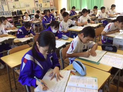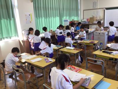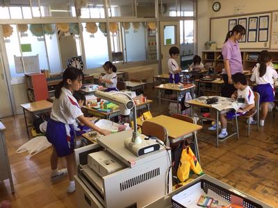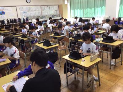 3時間目の各学年の様子です。1年生 国語、2年生 図工、3年生 国語、4年生 外国語活動、5年生 音楽、6年生 算数の時間でした。