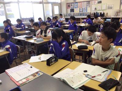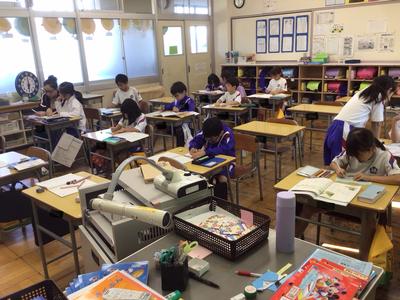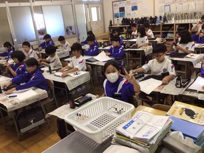 3時間目の各学年の様子です。1年生 音楽、2年生 国語、3年生 書写、5年生 体育、6年生 算数の時間でした。なお、4年生は校外学習に出掛けており、その様子は後ほどアップします。