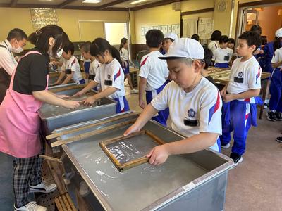 お腹がいっぱいになったところで、午後からは卯立の工芸館とパピルス館を訪れました。パピルス館では、実際に紙漉きを体験し、世界で一つの色紙を作り上げました。今日の校外学習を通して、越前和紙の歴史や製造工程を知ることができ、貴重な一日となりました。
