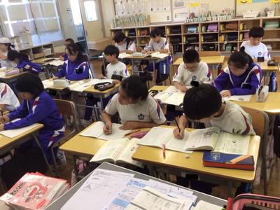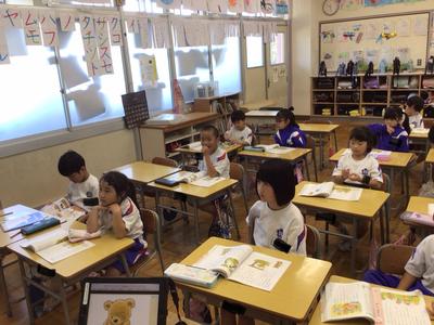 2時間目の各学年の様子です。1年生 道徳、2年生 国語、3年生 音楽、4年生 体育、5年生 国語、6年生 社会の時間でした。