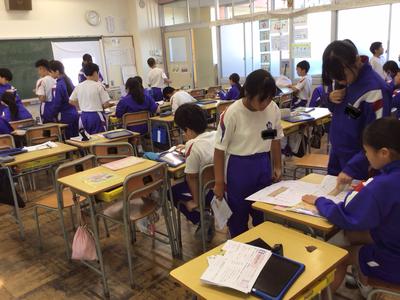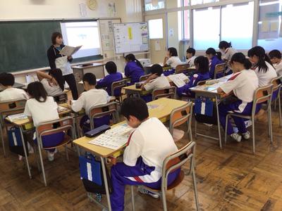 5時間目の各学年の様子です。1年生 算数、2・3年生 国語、4年生 書写、5年生 英語、6年生 国語(テスト返し)の時間でした。