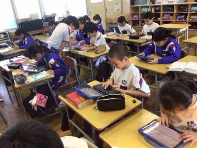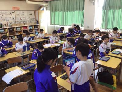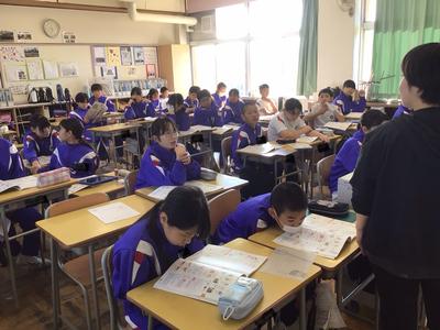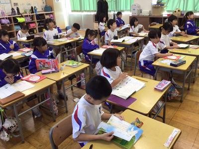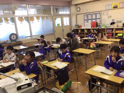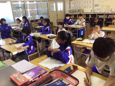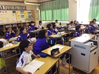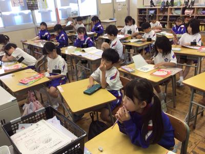 2時間目の各学年の様子です。1年生 国語、2年生 算数、3年生 理科、4年生 総合、5年生 算数、6年生 家庭科の時間でした。1年生は席替えがあったようです。