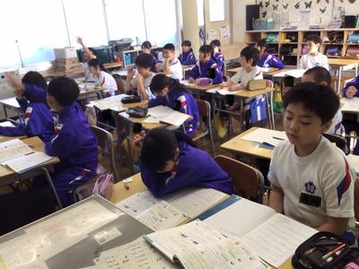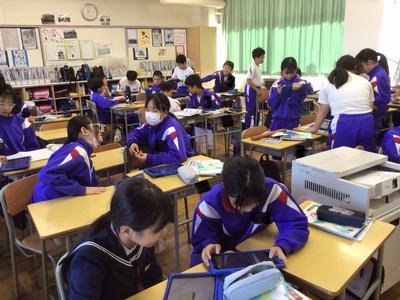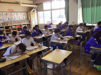 3時間目の各学年の様子です。1年生 生活科、2年生 書写、3年生 音楽、4年生 算数、5年生 体育、6年生 社会の時間でした。